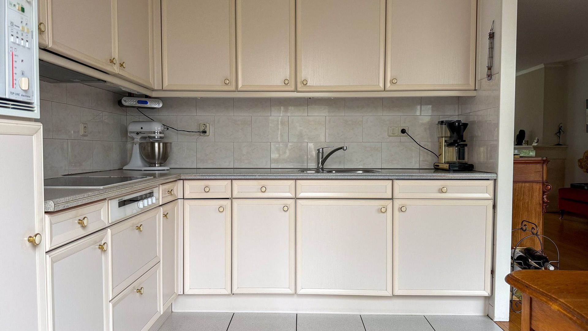 Vanuit de hal loop je door naar de woonkamer en de keuken. De woonkamer, gelegen aan de voorzijde van de woning, is een fijne leefruimte met plek voor een grote zithoek. Aan de achterzijde ligt de lichte keuken, grenzend aan de achtertuin. De keuken is voorzien van een koelkast, elektrische kookplaat en een combi-oven. Vanuit hier loop je zo de tuin in. Het is een prettige plek waar dagelijkse dingen als koken, eten en buiten zijn, mooi in elkaar overlopen.
