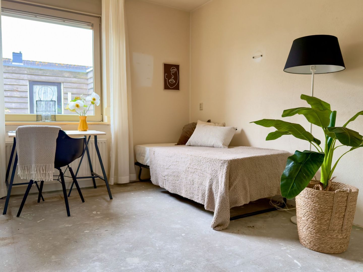 Vanuit de woonkamer bereik je de slaapkamer op de begane grond, een ruime kamer waar met gemak een tweepersoonsbed past of die desgewenst als werk-/hobbykamer gebruikt kan worden.