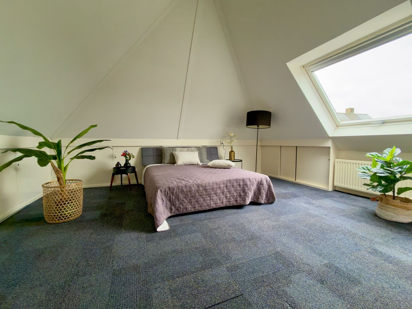 Op de verdieping kom je eerst op de voorzolder, waar de CV-opstelling en witgoedaansluitingen zijn gerealiseerd. Daarnaast is hier een ruime tweede slaapkamer met veel vaste bergruimte en een groot dakraam, waardoor deze kamer aangenaam licht is.