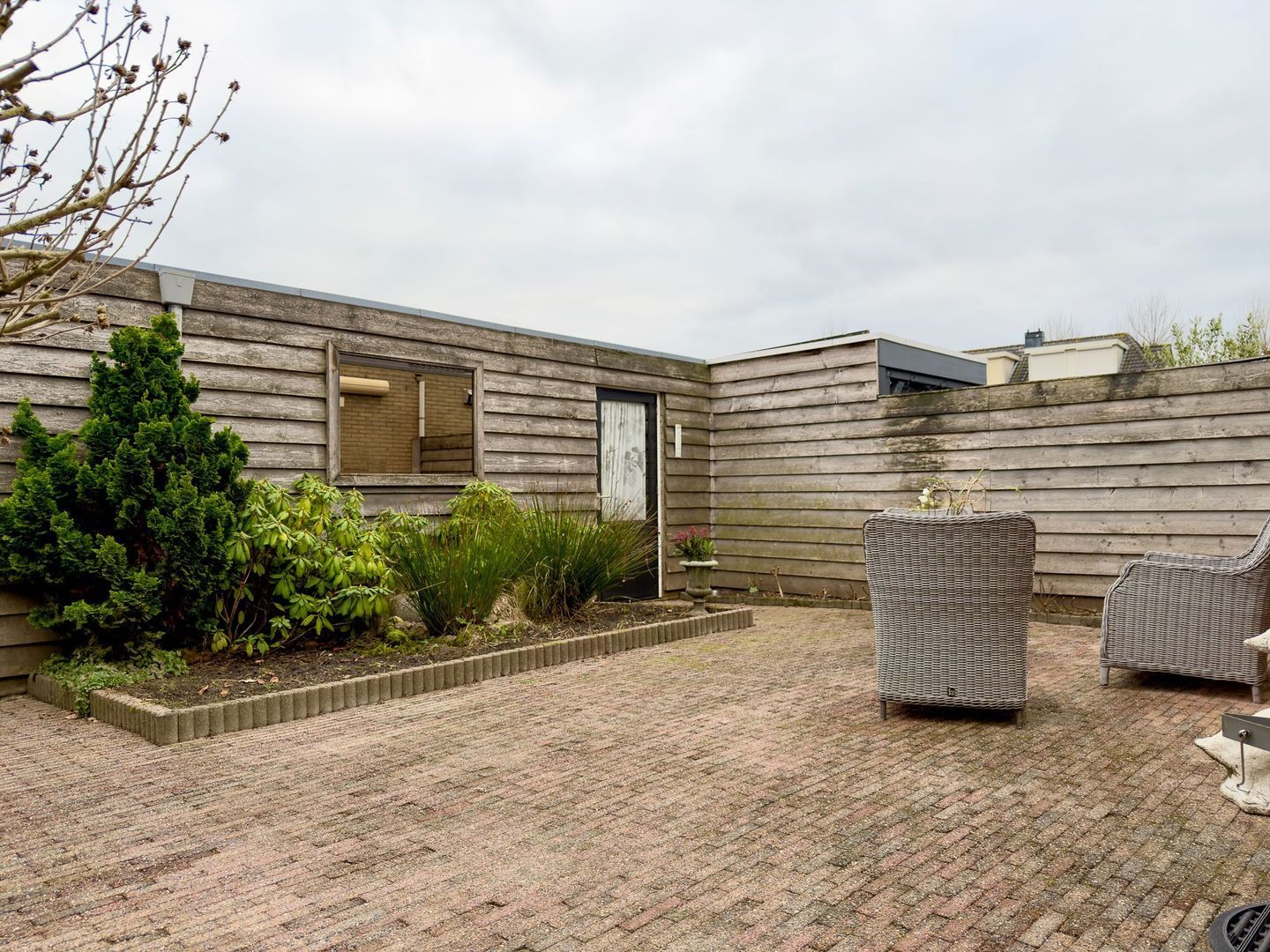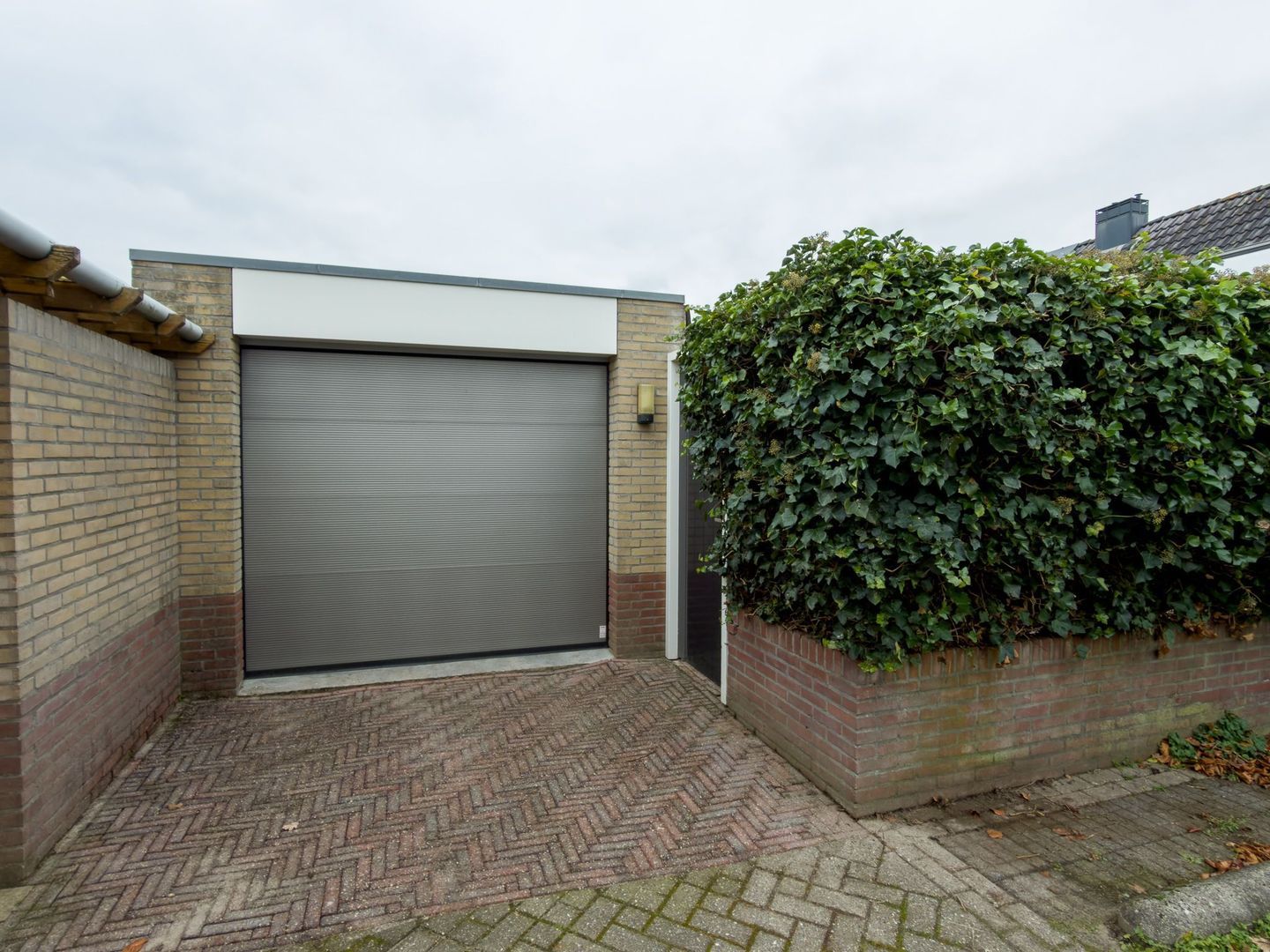 Achter op het perceel staat de garage, ideaal voor de auto, fietsen of als extra berg- en hobbyruimte.