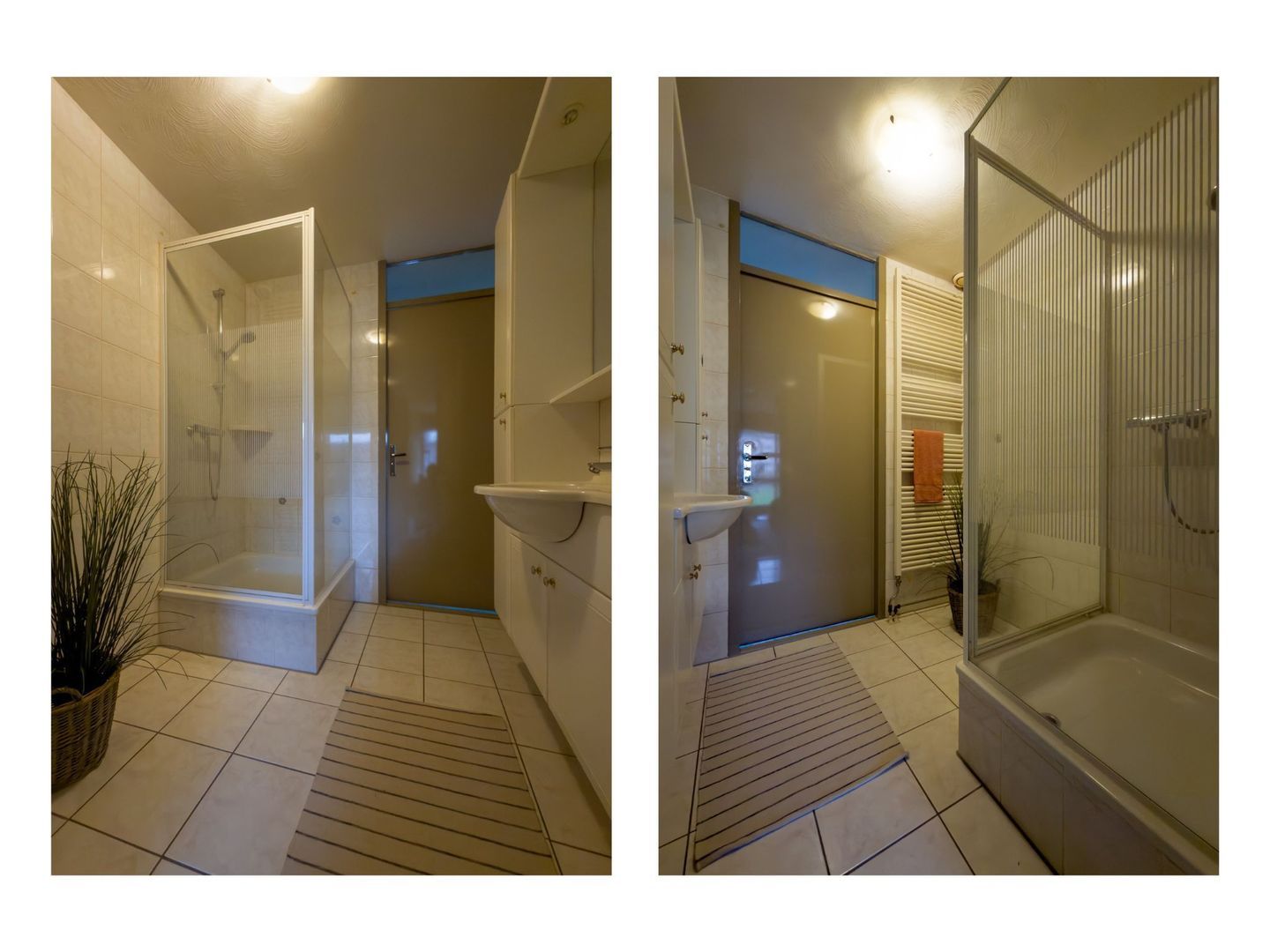 De badkamer op de begane grond is voorzien van een douchecabine en een wastafel. Bij een eventuele renovatie is er voldoende ruimte om de indeling naar eigen wens aan te passen, bijvoorbeeld met een ligbad.