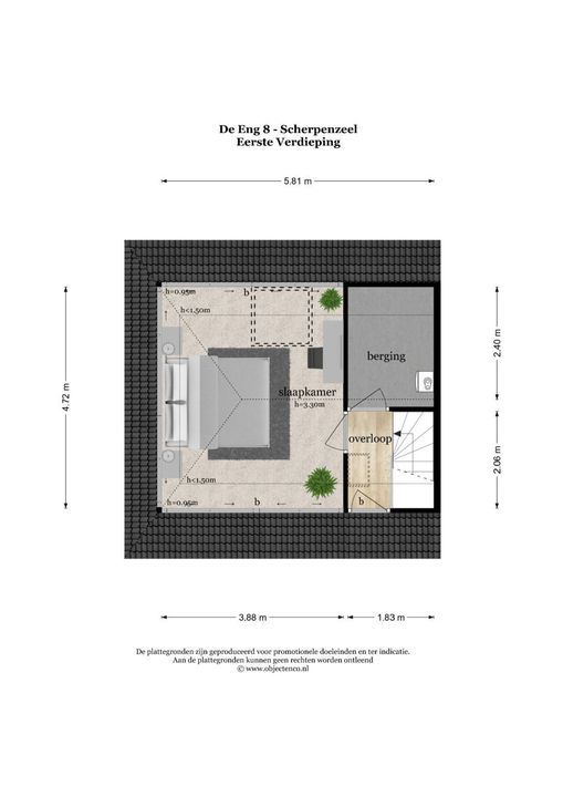 Deze informatie is door ons met de nodige zorgvuldigheid samengesteld. Onzerzijds wordt echter geen enkele aansprakelijkheid aanvaard voor enige onvolledigheid, onjuistheid of anderszins, dan wel de gevolgen daarvan. Alle opgegeven maten en oppervlakten zijn indicatief.