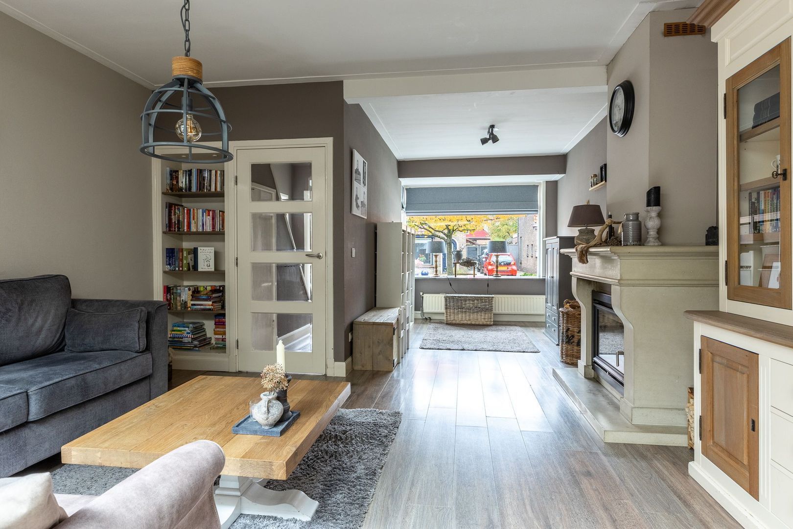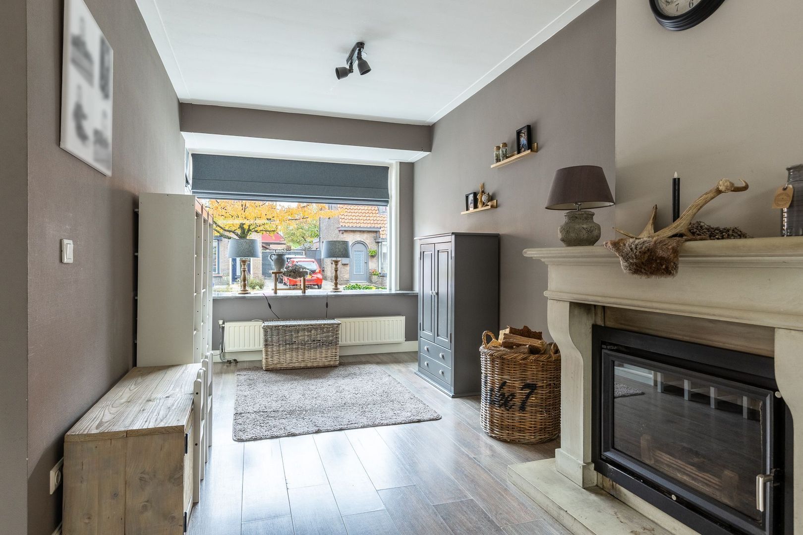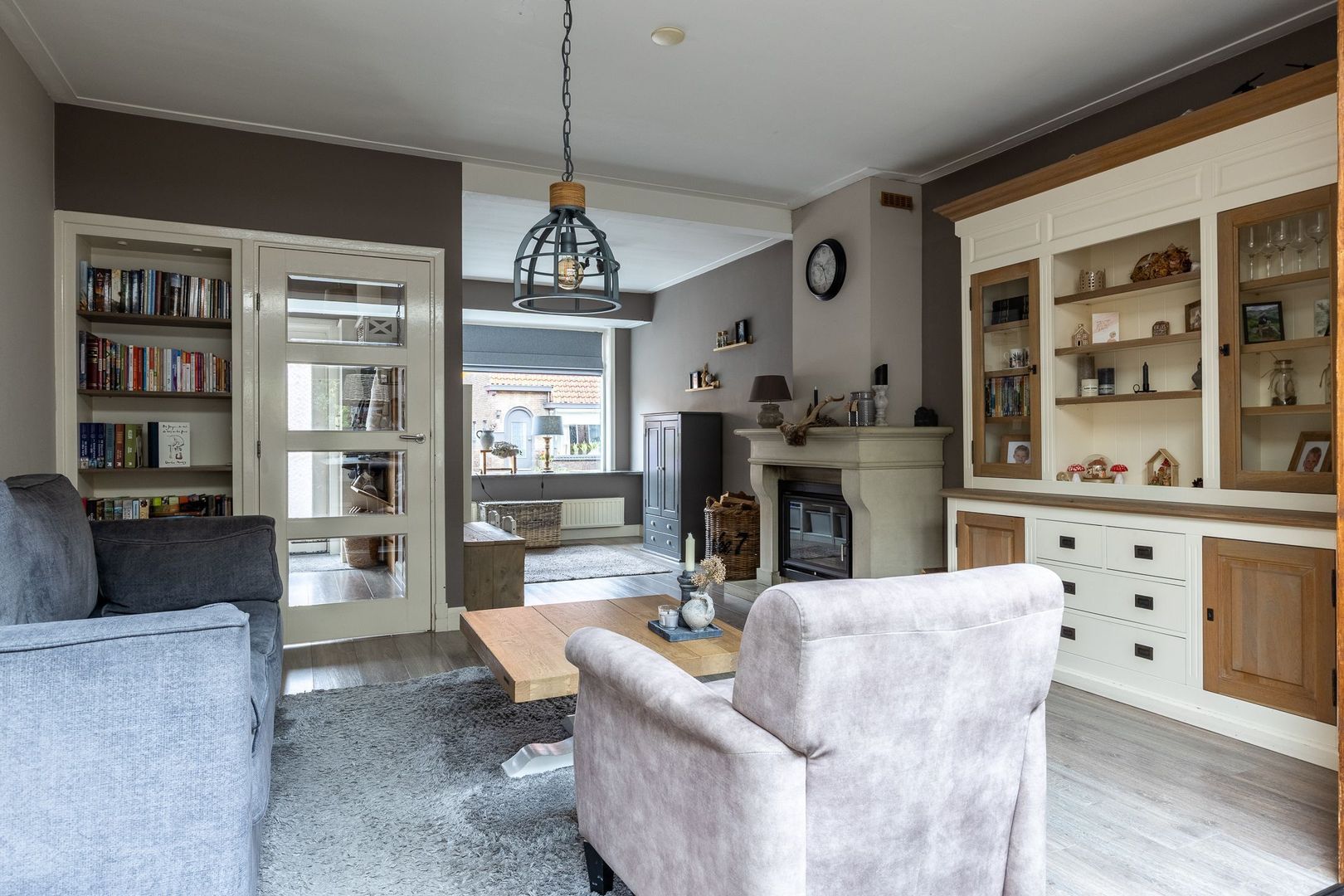 Aan de voorzijde zorgt de erker voor een prettige lichtinval en een karakteristiek aanzicht, terwijl de schouw met haard in de woonkamer direct het gevoel van huiselijkheid versterkt.