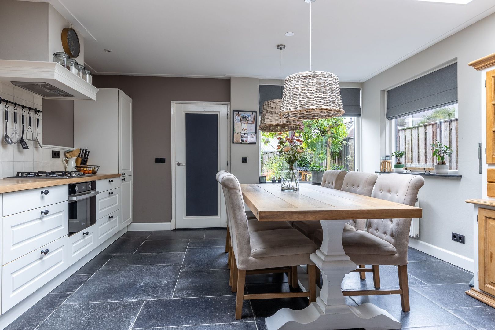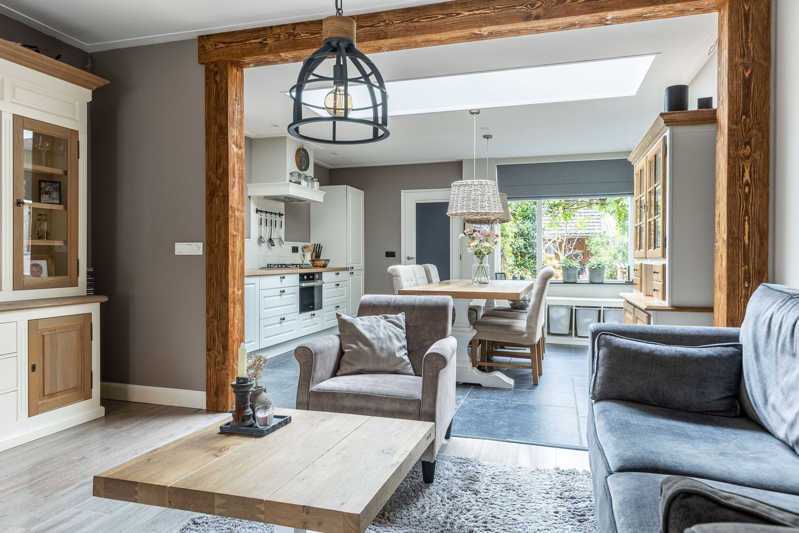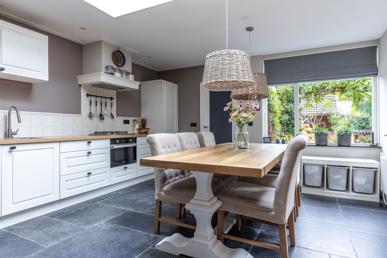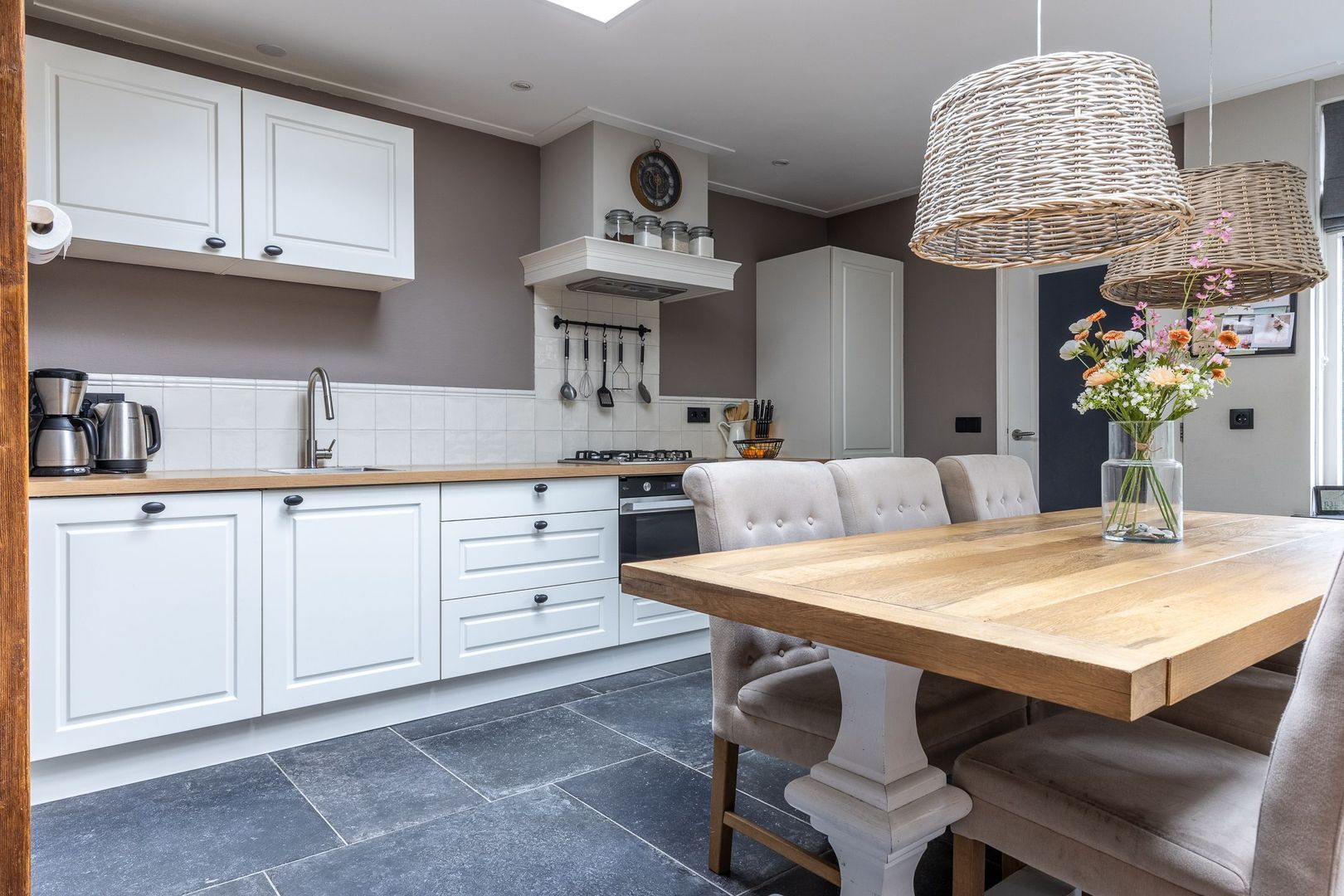 Aan de achterzijde is de woning flink vergroot, met als resultaat een royale woonkeuken in landelijke stijl met een complete keukenopstelling inclusief inbouwapparatuur. Deze ruimte vormt écht het hart van het huis. Dankzij de lichtstraat komt er veel daglicht binnen, wat zorgt voor een lichte en open sfeer. De keuken biedt volop ruimte voor een grote eettafel waar familie en vrienden samen kunnen komen voor lange, gezellige avonden.