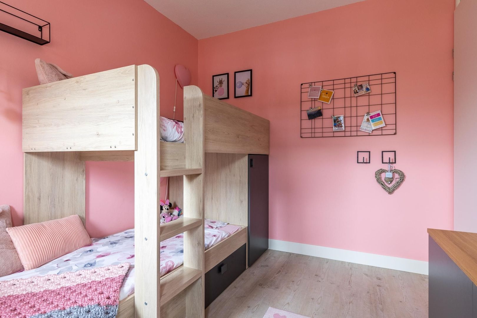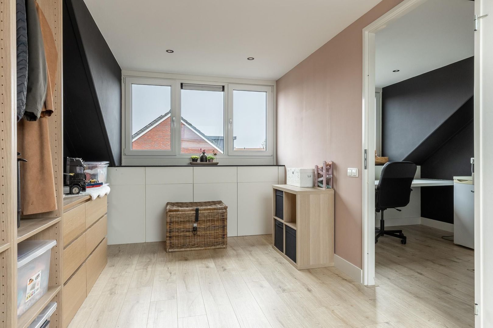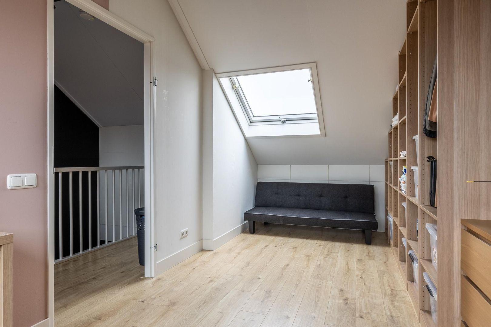 Via de vaste trap kom je op de tweede verdieping. Deze is opgesplitst in een royale voorzolder en 4e slaapkamer. Doordat er over de volle breedte een dakkapel is geplaatst, hebben beide ruimtes voldoende daglicht en meer ruimte. Op de voorzolder is er een fijne werkplek gerealiseerd plus je hebt hier ook de aansluitingen voor de wasmachine en wasdroger.