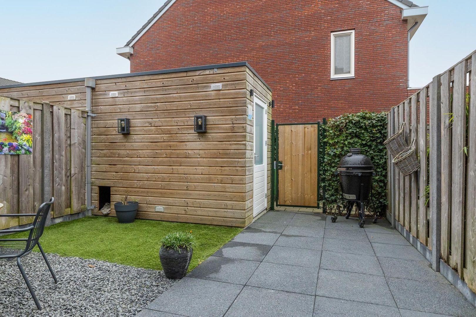 Achter op het perceel staat de berging. Een praktische plek voor het plaatsen van fietsen en het opbergen van spullen die je niet dagelijks nodig hebt.
