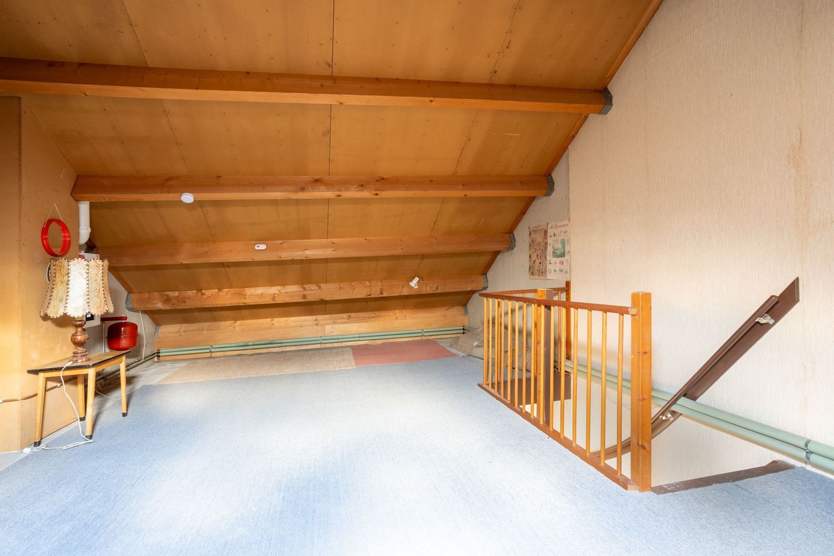 De tweede verdieping is een royale open ruimte met cv-opstelling en een dakraam voor het daglicht.