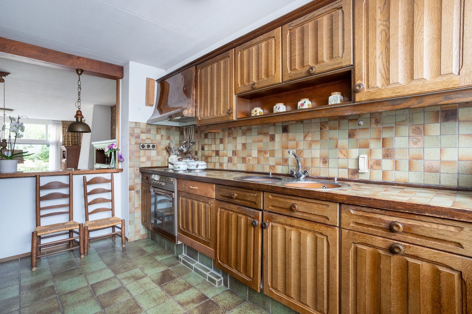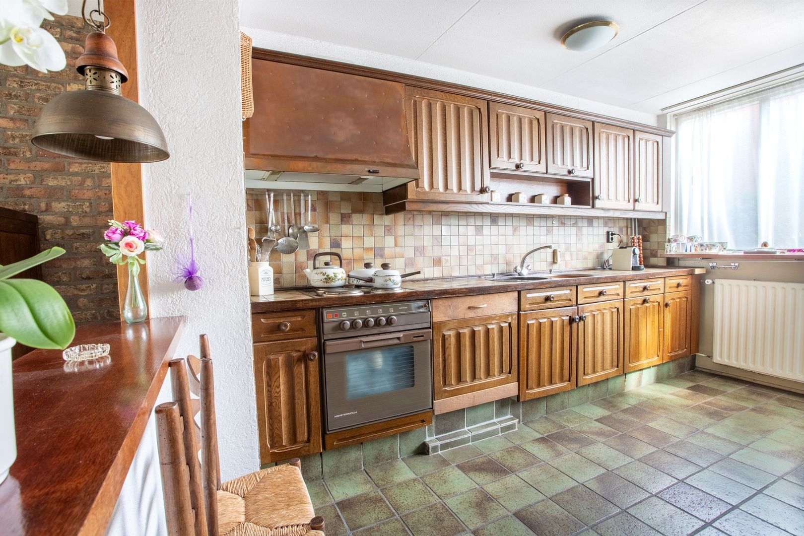 Hoewel zowel de keuken als de badkamer gedateerd zijn, biedt dit juist een mooie kans om deze ruimtes volledig naar eigen smaak te vernieuwen en de woning een moderne, persoonlijke uitstraling te geven.
