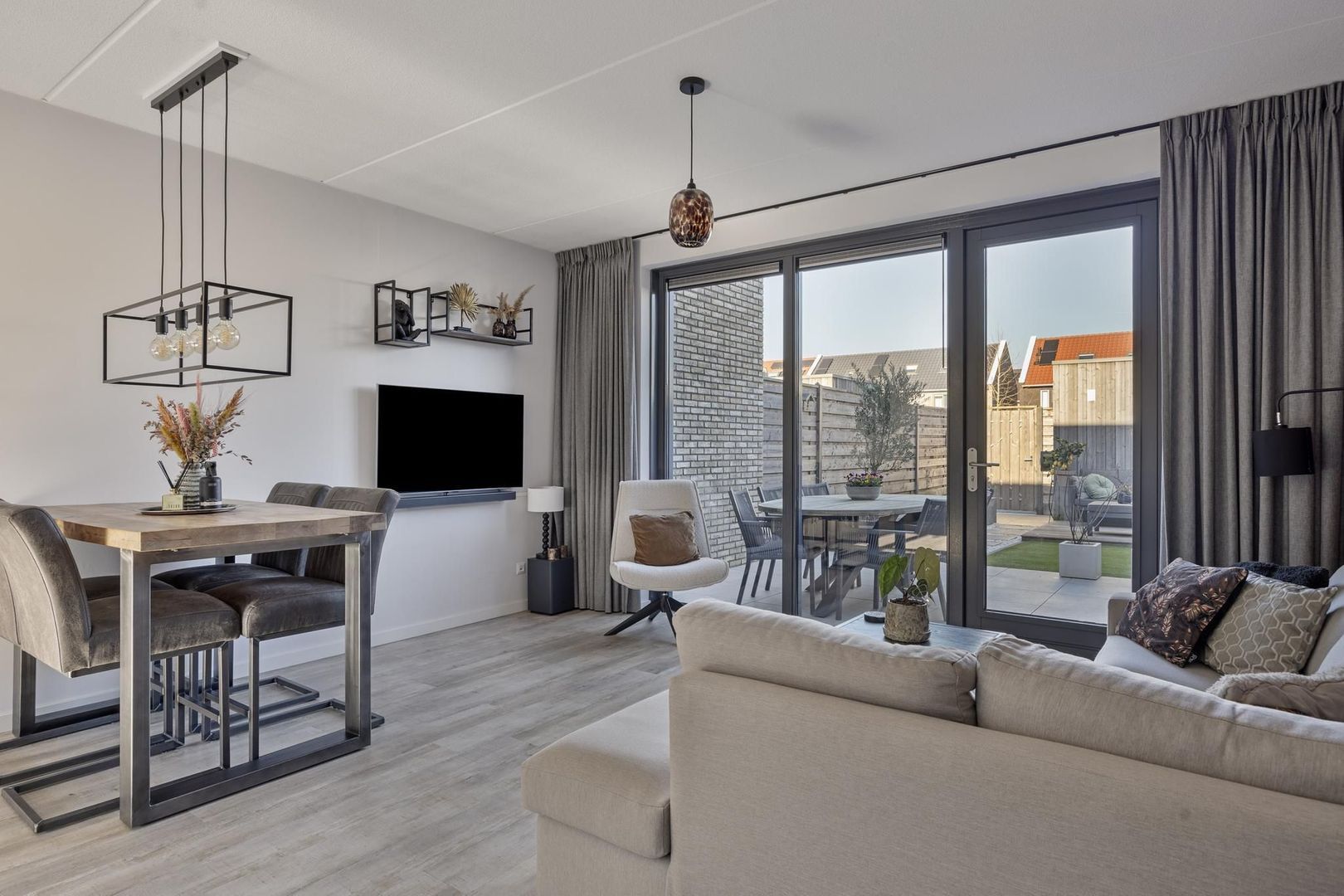 Bij binnenkomst in de woning word je verwelkomd in een brede hal met de doorloop naar de lichte en tuingerichte woonkamer. De grote raampartij aan de achterzijde zorgt voor een overvloed aan natuurlijk licht en biedt een prachtig uitzicht op de fraai aangelegde achtertuin. De halfopen keuken is een ware eyecatcher. Met een strakke keukenopstelling, compleet met moderne inbouwapparatuur is deze ruimte zowel functioneel als stijlvol. Of je nu een snelle maaltijd wilt bereiden of een uitgebreid diner, de keuken biedt alle faciliteiten die je nodig hebt. De open verbinding met de woonkamer zorgt ervoor dat je altijd in contact blijft met je gasten.
